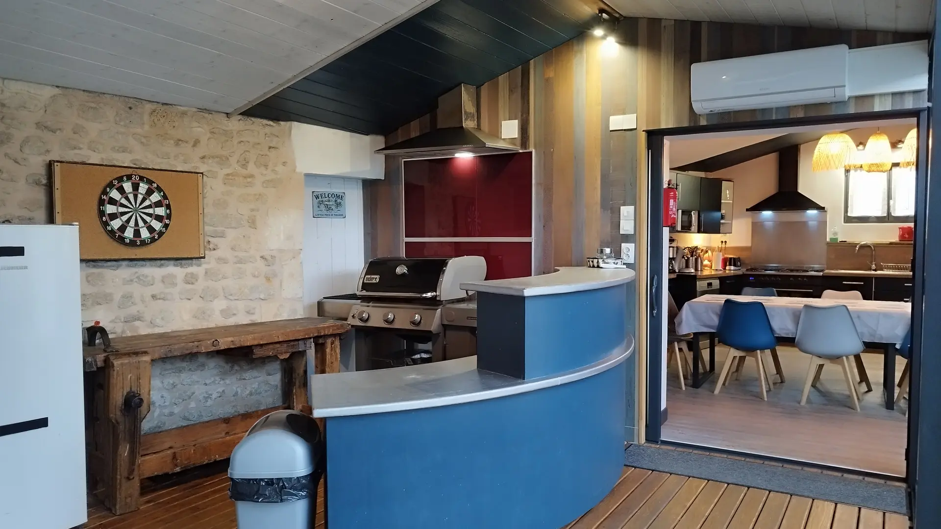 La Villa de l'Océan is designed to offer comfort, art de vivre and well-being: bar counter, relaxation lounge, 2 private Jacuzzis heated to 36°, private indoor pool heated to 29° all year round, pool billiards, table soccer, ping-pong, darts, plancha grill, gas and charcoal barbecue.